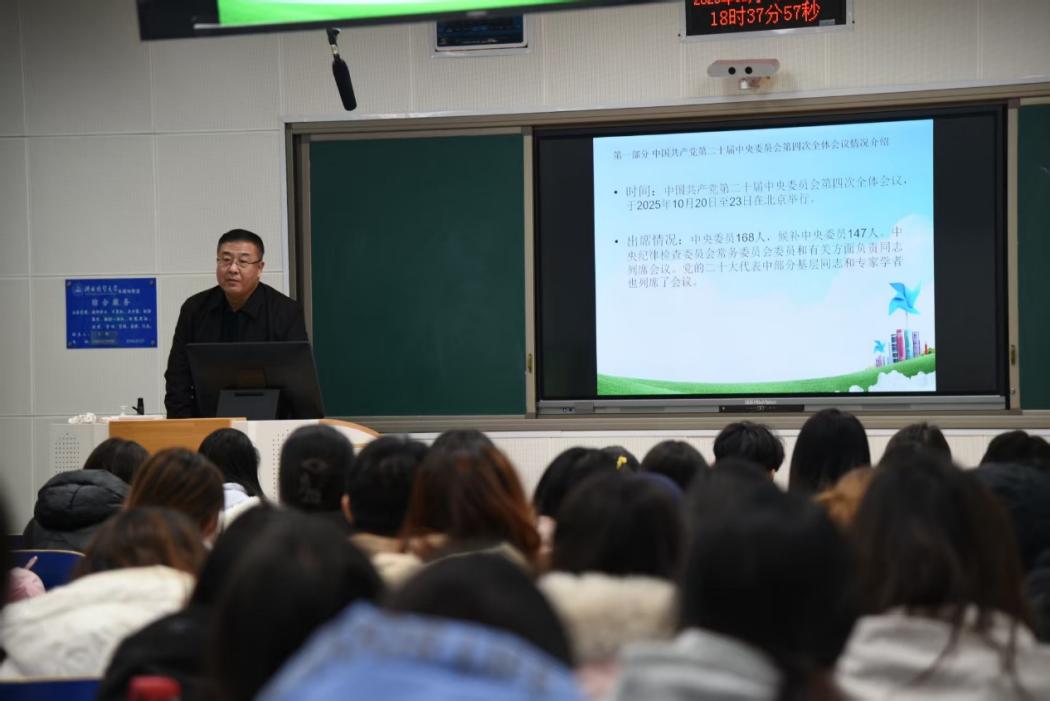 12月8日下午,会计学院在北二教106召开全体教职工会议,学院党委书记王继伟、院长李西文、副院长邸丛枝出席,全院教师参会。会上,李西文围绕党的二十届四中全会精神作专题宣讲,深入阐释全会的时代价值与核心要义,系统解读“十五五”规划建议的战略定位与实践路径,聚焦高质量发展核心要求,结合会计学科特色,强调要将全会精神深度融入学科建设、教学改革与人才培养各环节,锚定时代发展方向,深耕专业建设、优化育人模式,以精准发力践行育人使命,彰显办学担当。同时,她号召教师积极推荐校企合作试点,主动宣传学院,凝聚发展合力。此次全体教职工会议的召开,进一步推动党的二十届四中全会精神在学院落地走实,让全院教师深刻把握了“十五五”规划与学科发展的结合点。