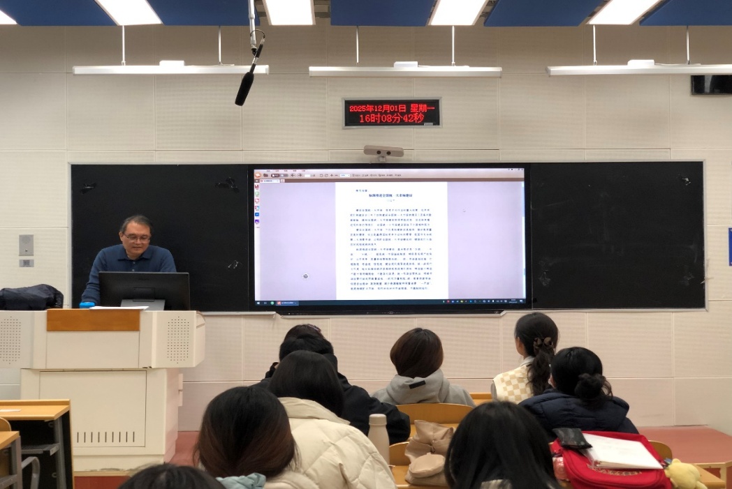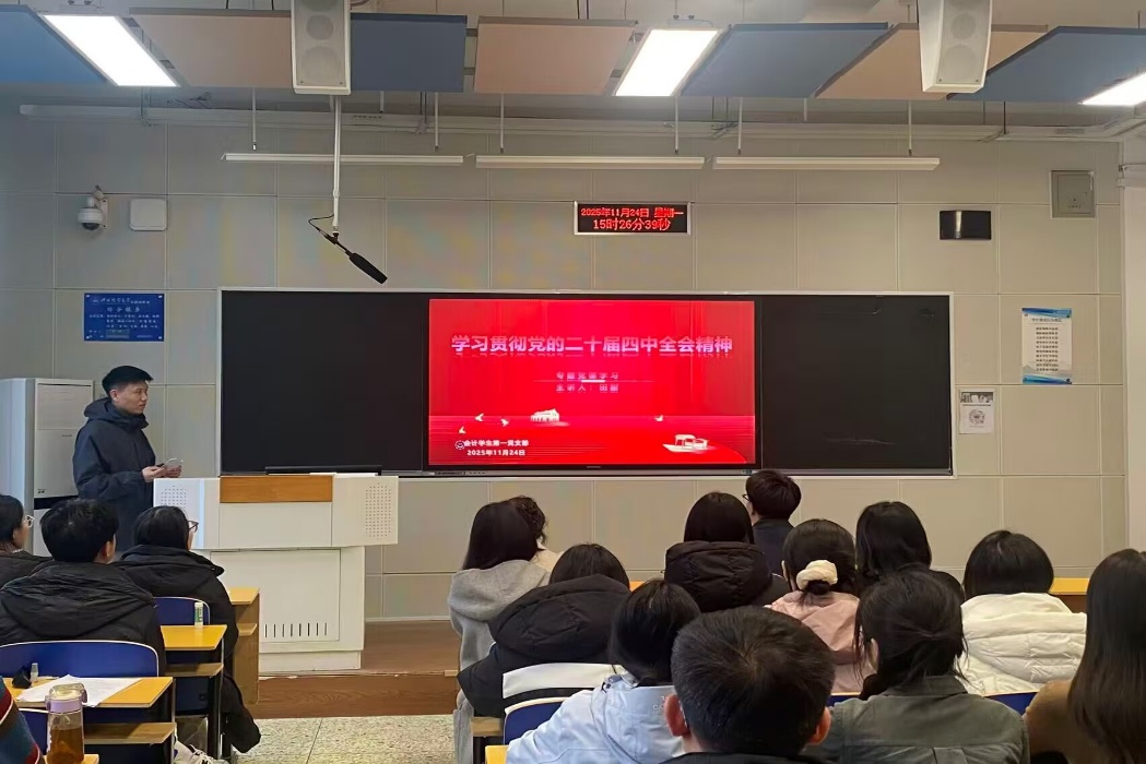 12月4日晚,会计学院在B107教室举行党的二十届四中全会精神专题宣讲会,学院党委书记王继伟担任主讲人,94名学生干部参加。王继伟从时代背景、核心要义、实践要求三个维度解读全会精神,梳理“十五五”时期发展蓝图,重点阐释“以中国式现代化全面推进中华民族伟大复兴”等与青年相关的战略部署。他对学生干部提出三点要求:一是不折不扣抓好精神落实;二是认真做好宣传阐释;三是坚持“干字当头,落细落实”,号召大家将全会精神与专业学习、服务同学实践相结合,在锤炼品德中筑牢根基,在勤学苦练中增长本领。本次宣讲会不仅让学生干部们深刻理解了党的二十届四中全会精神,更提升了同学们的政治素养与责任意识。
